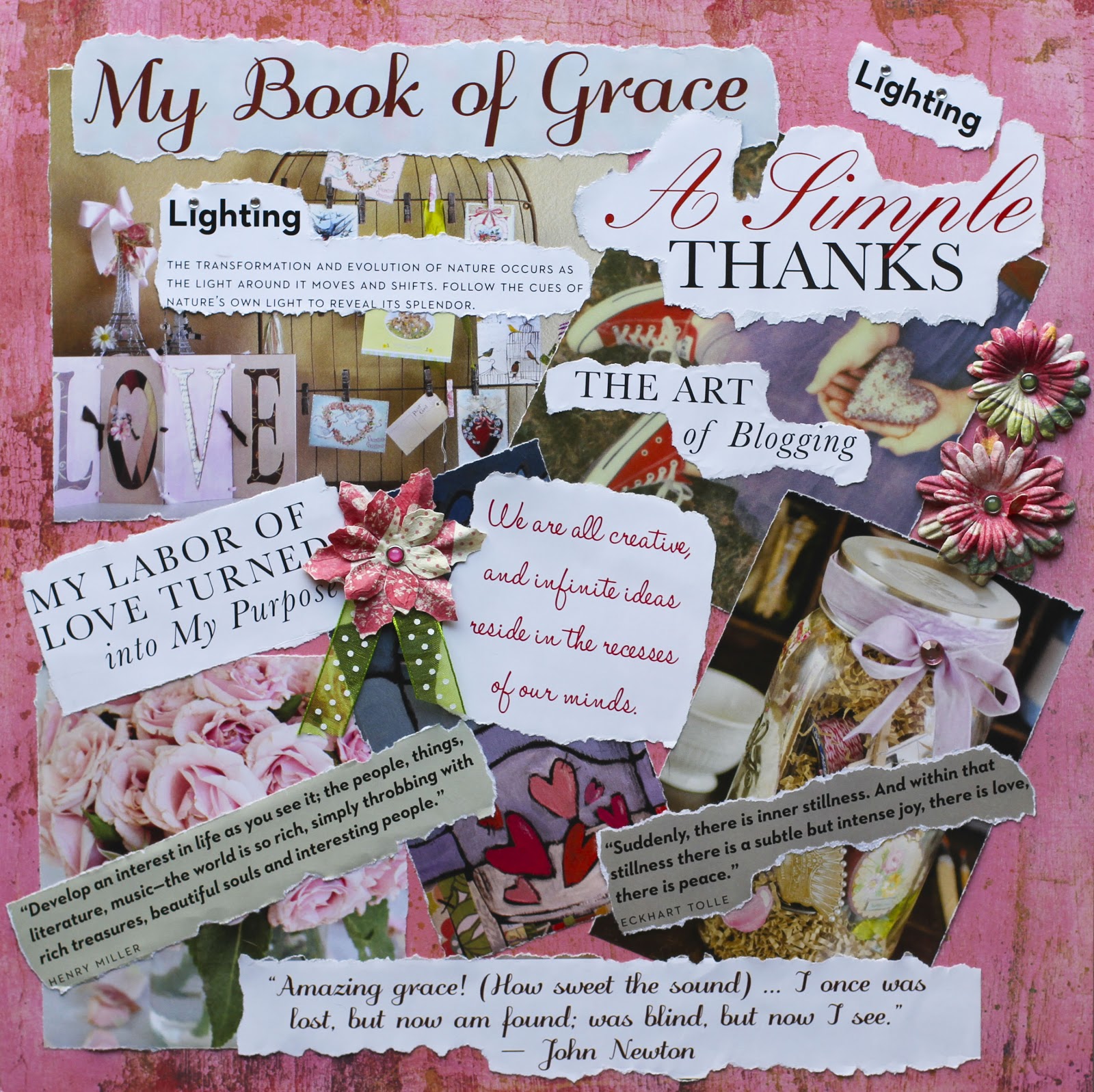 In my brokenness, I've struggled to recognize God's blessings, often taking what I have for granted. My vision board was a celebration (my one-little-word) of goodness! In the process of creating the board, I was visualizing God's grace in my life.